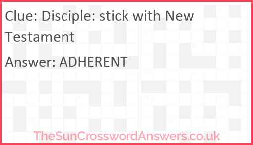 Adherent crossword clue Adherent. Last appearing in the Penny Dell - Medium puzzle on November 27, 21 this clue has a 3 letters answer. Adherent has also appeared in 4 other occasions according to our records. Below you will find the answer to the clue but if it doesn't fit please feel free to contact us directly or write a comment to discuss it.