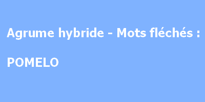 Agrume hybride mots fléchés - Le Coin des Animateurs ... Agrume hybride mots fléchés Découvrez la solution pour agrume hybride aux mots fléchés : Mot en 6 lettres : POMELO. Qu'est-ce que le Pomelo ? Le Pomelo est un agrume de couleur jaune tacheté de rose ou de rouge. Un pomelo ressemble à un pamplemousse. Il est originaire des Caraïbes et non pas d'Asie. Le Pomélo regorge de vitamine C !