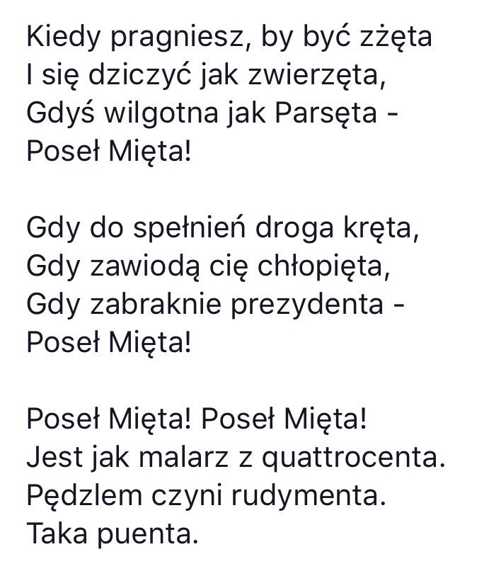Wierszyk z puentą. Porozmawiaj z - Home - Facebook Porozmawiaj z. 124 likes. Ta strona to forma klubu sąsiedzkiego, do którego każdy może wpaść na pogawędkę wirtualną ale dobro-sąsiedzką - pomyślaną na wór brytyjskiego pubu. Zw względu na wirtualny... Mikołaj Kopernik - wiersz Rymowany - Wiersze ... - Kobieta.pl Coż mogę napisać Arku, wiersz wymiata. Mówiłem już z milion razy, że dobry pomysł, to 2/3 sukcesu. Rytmicznie, błyskotliwie,(widać pracę nad szczegółami) z humorem, z rewelacyjną puentą, nic tylko czytać, czytać i czytać... Pozdrówka! Bambo - interpretacja, środki stylistyczne, analiza ... Utwór kończy się puentą, która wyraża żal. Polskie dzieci żałują, że Bambo nie może chodzić razem z nimi do szkoły. Z pewnością byłby dobrym i niezwykle wesołym kolegą. Czytaj dalej: Lokomotywa interpretacja. Ostatnia aktualizacja: 2020-11-22 18:01:12. Komentarze. Nic dwa razy - Wisława Szymborska Nic dwa razy. Autorem wiersza jest Wisława Szymborska. Interpretacja. Nic dwa razy się nie zdarza. i nie zdarzy. Z tej przyczyny. zrodziliśmy się bez wprawy. i pomrzemy bez rutyny. Choćbyśmy uczniami byli.