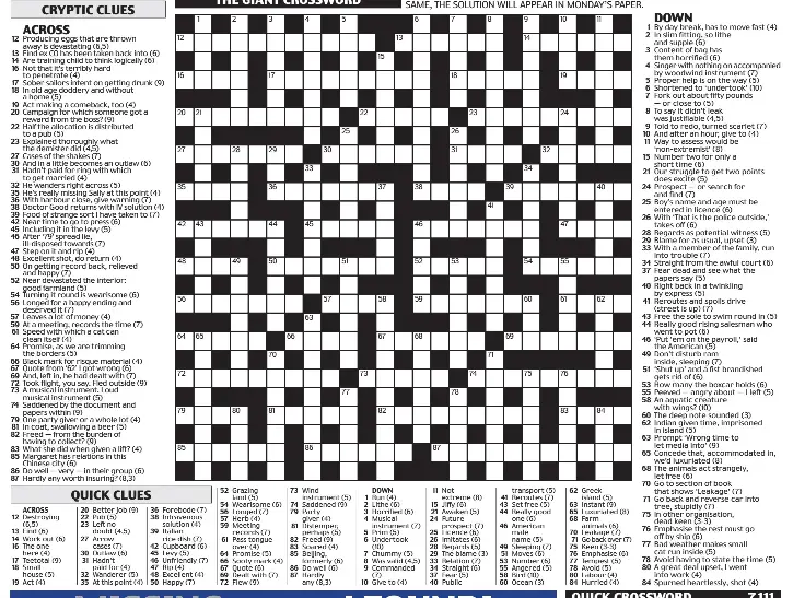 Scottish Daily Mail Giant Crossword January 2, 2021 ... - Wordplays Free Crossword Puzzles by Newspaper . Most puzzles are available without a subscripton on the day of publication. A subscription is required to view most older puzzles. New York Times Crossword: The New York Times has one of the world's most popular crossword puzzles. It also has additional word games such as Spelling Bee, Vortex, and Sudoku.